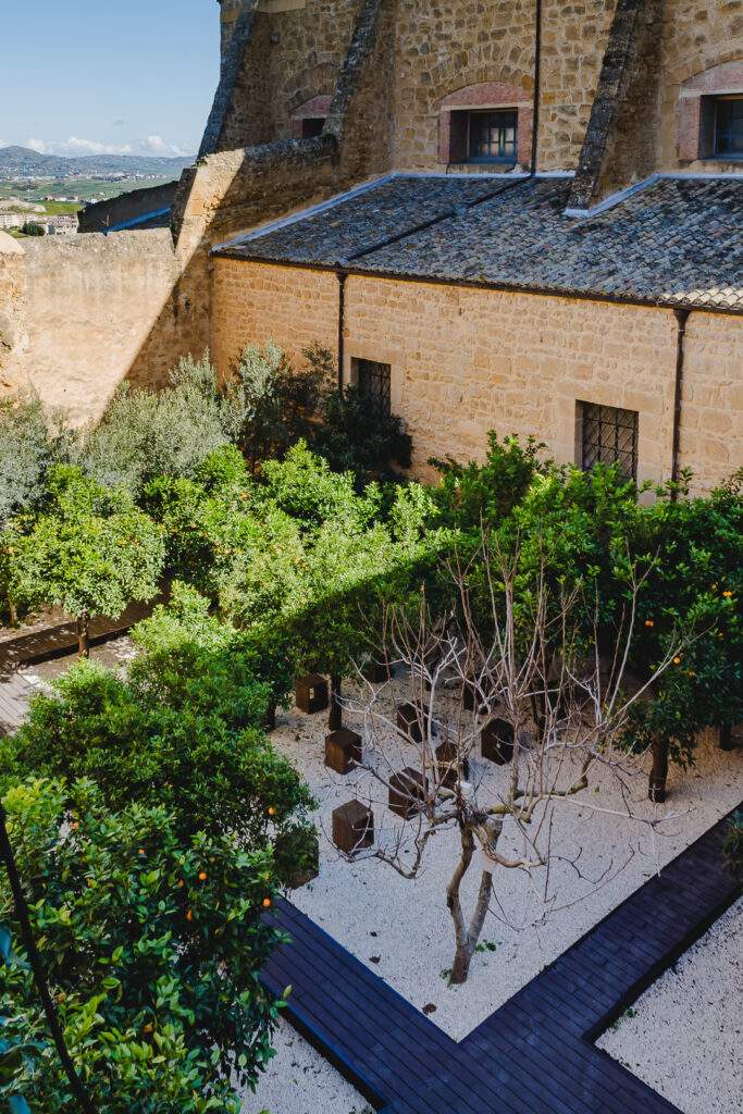 Il Museo Diocesano custodisce al suo interno un piccolo giardino, luogo intimo e nascosto, legato al vescovo Andrea Lucchesi Palli (1755-1968) che per portare a compimento il suo progetto di ampliamento del Palazzo, riceve dalla Duchessa di Castrofilippo l’area denominata Giardinello del Castello, attigua al Palazzo, delimitato a settentrione dai ruderi del castello e dalla chiesa dell’ltria.